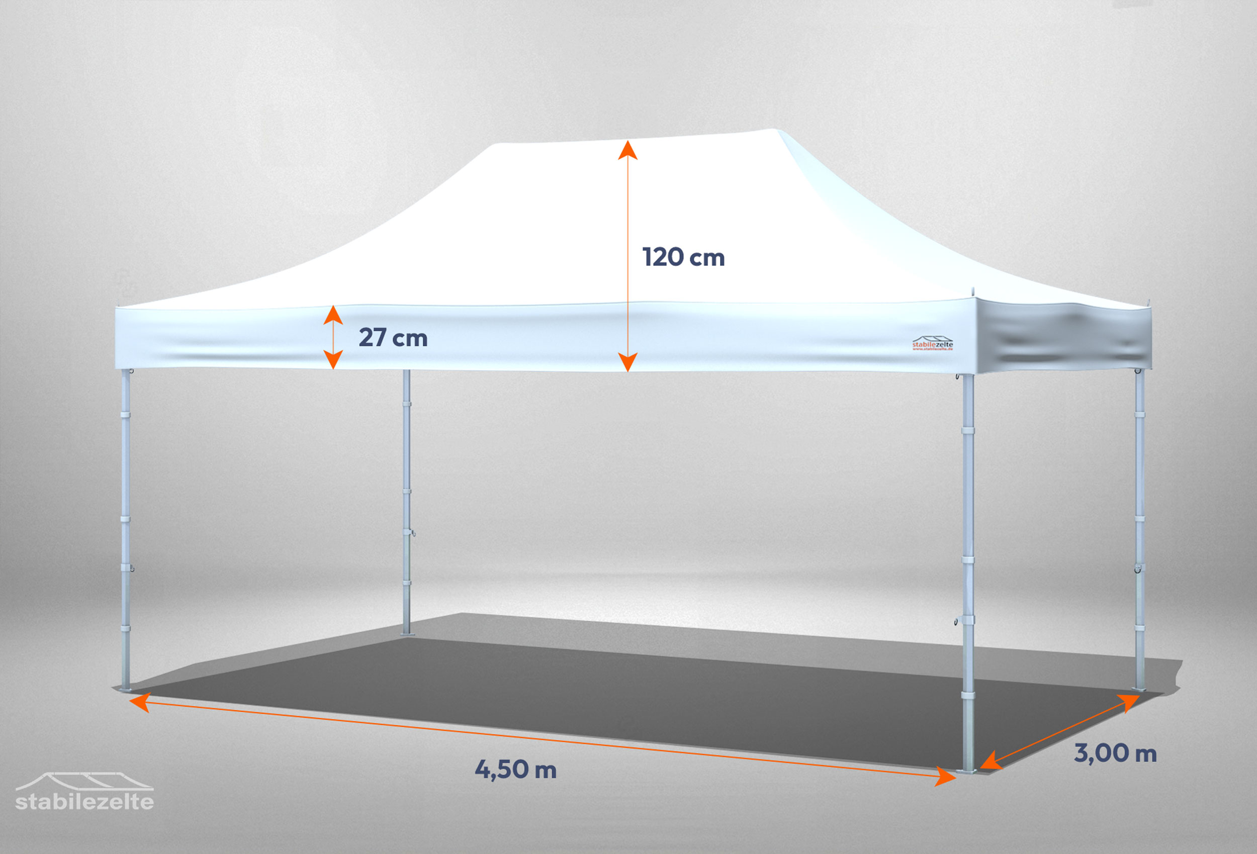 Faltpavillon 3m x 4,5m ohne Seitenteile mit Bemaßung