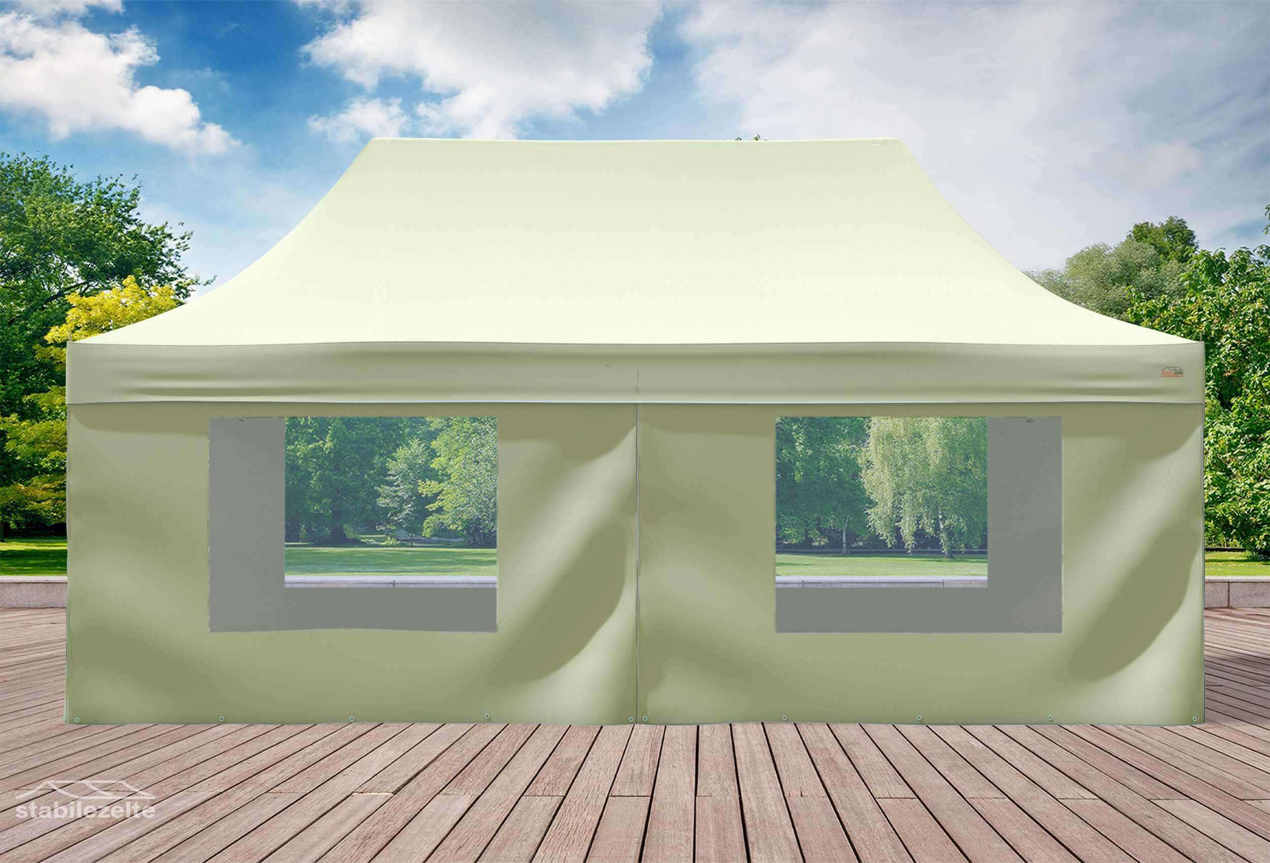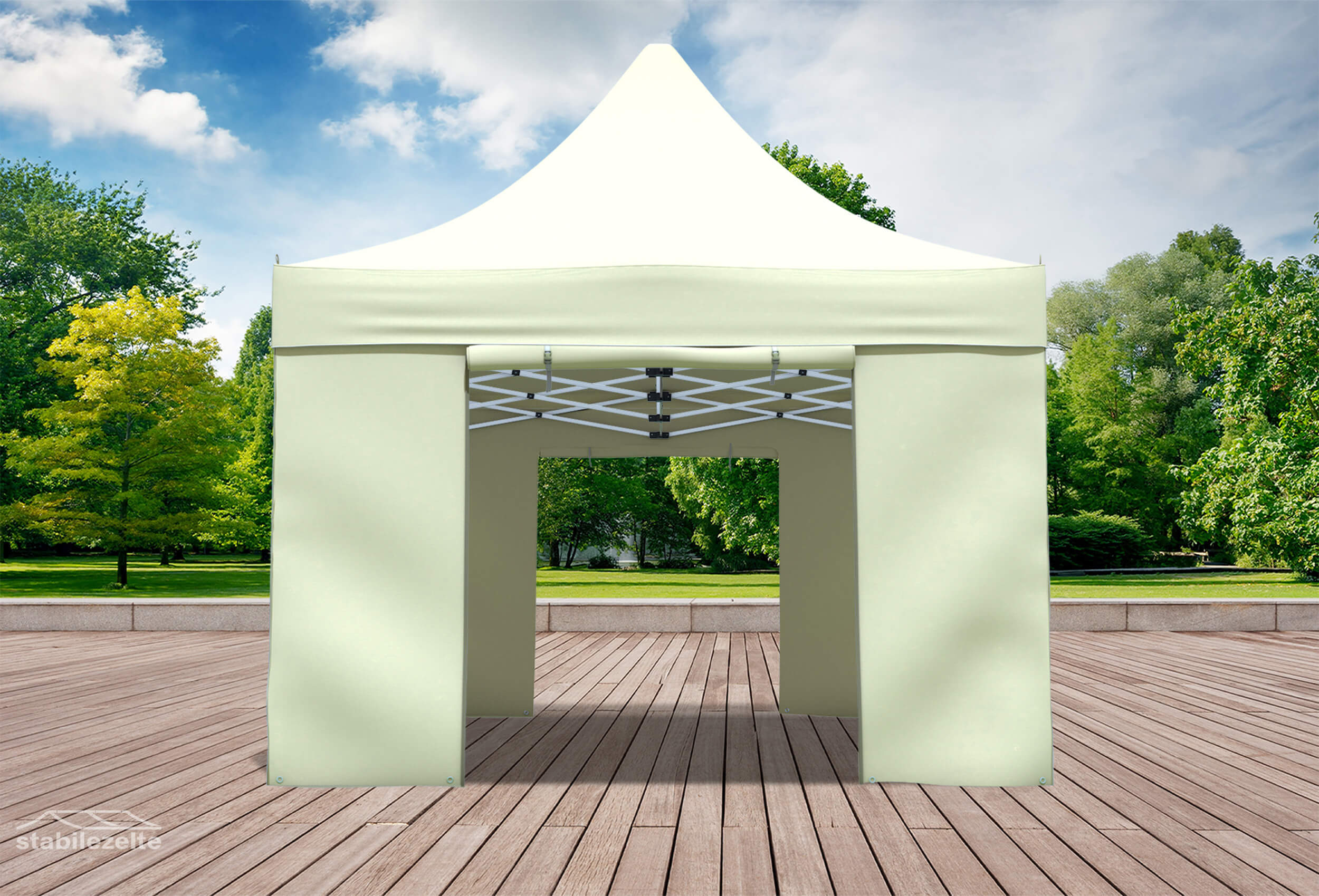 Reißfestes Pro Polyester mit innenbeschichtetem PVC (330 g/m²) -100 % Wasserdichtideal für die temporäre Nutzung Zusätzlich heiß verschweißte Nähte im Dachbereich