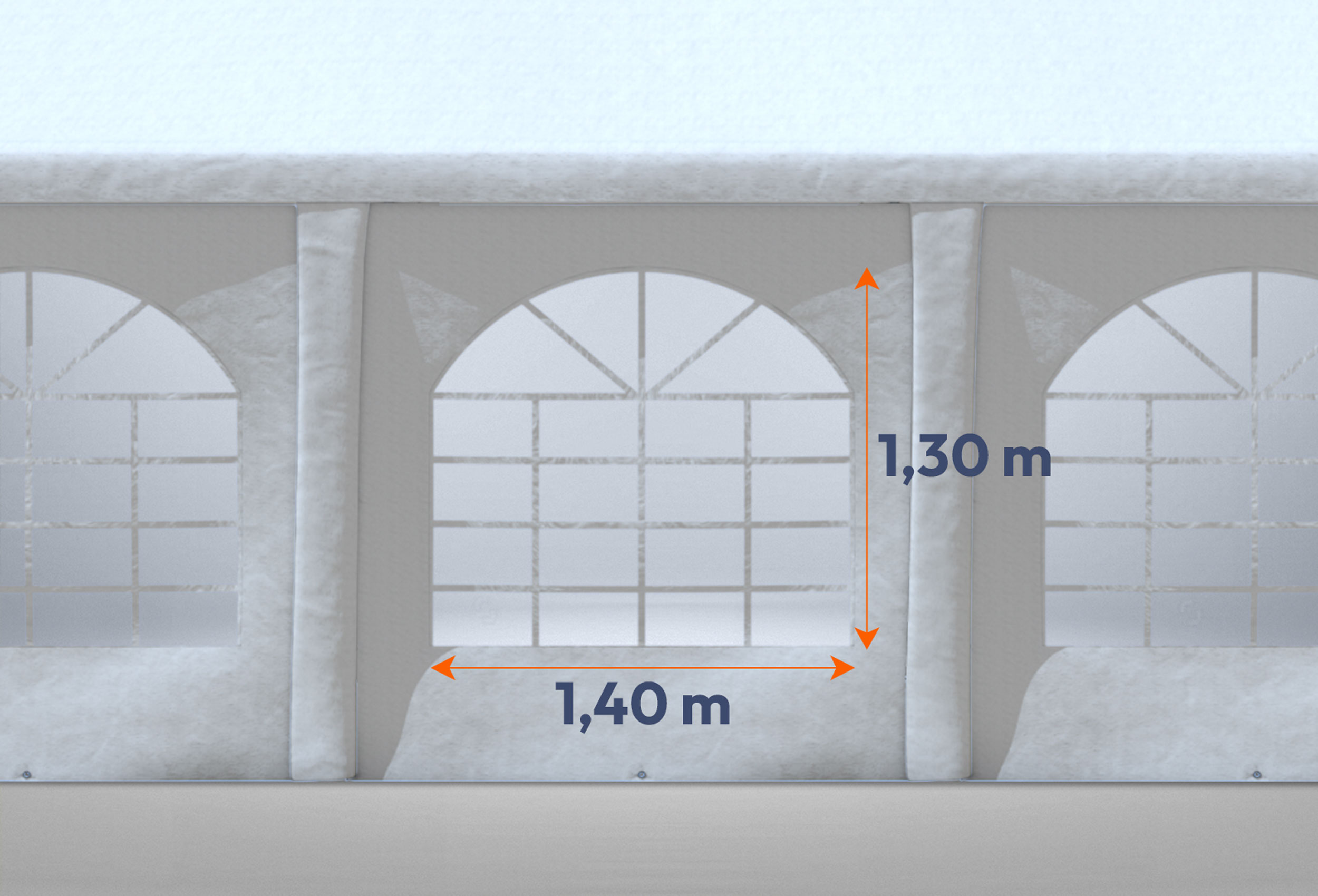 optional mit oder ohne Fenster - individuell zusammenstellbar im 3D Konfigurator Seitenwände mit Dachplane immer überlappend - Umlaufender Volant und Schals an den Standfüßen