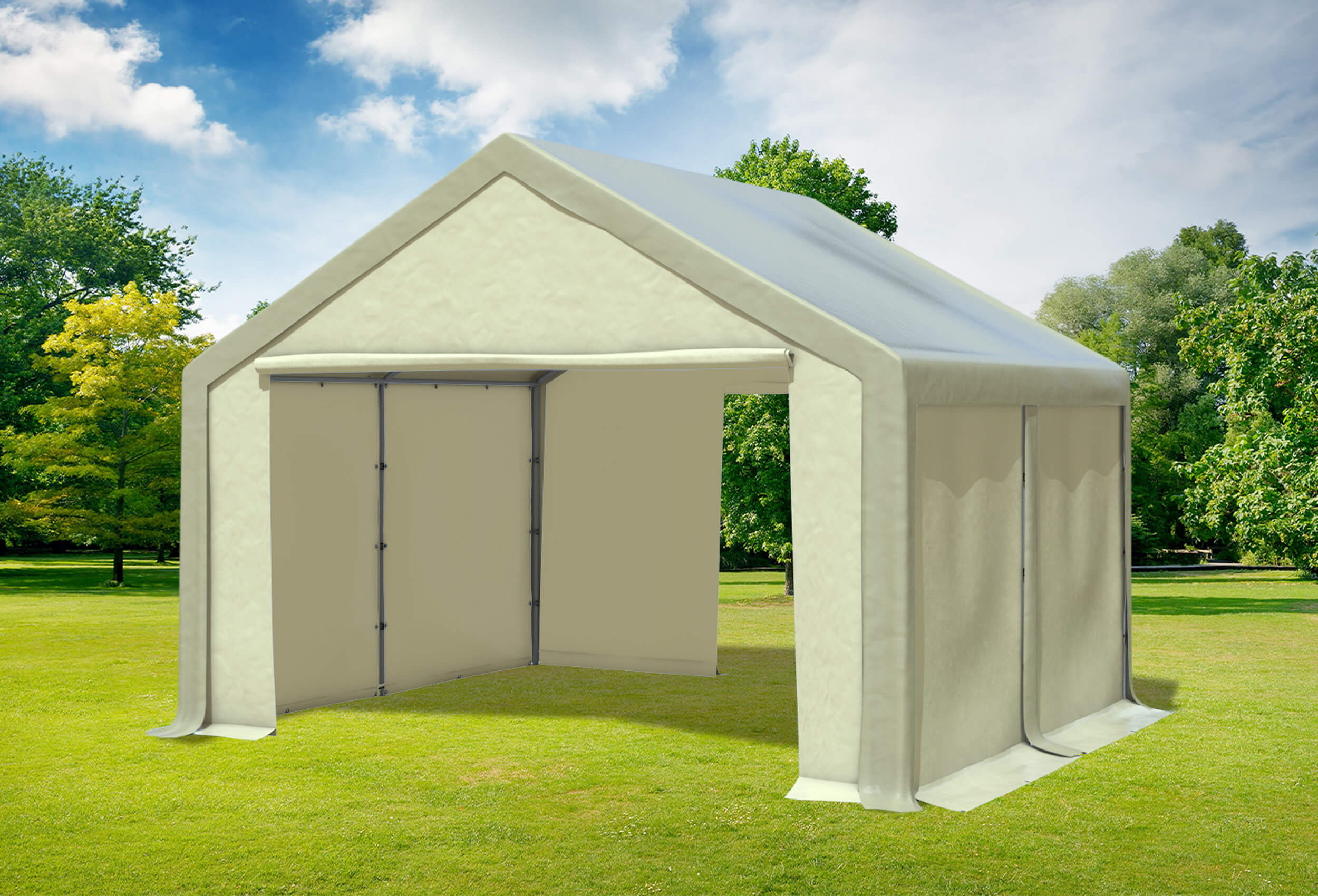 100 % wasserdicht - Alle Planen heiß verschweißtkein vernähtes PVC - keine tropfenden Nähte Starke 500 g/m² Materialstärke der Dachplane und Seitenteile aus Professional PVC