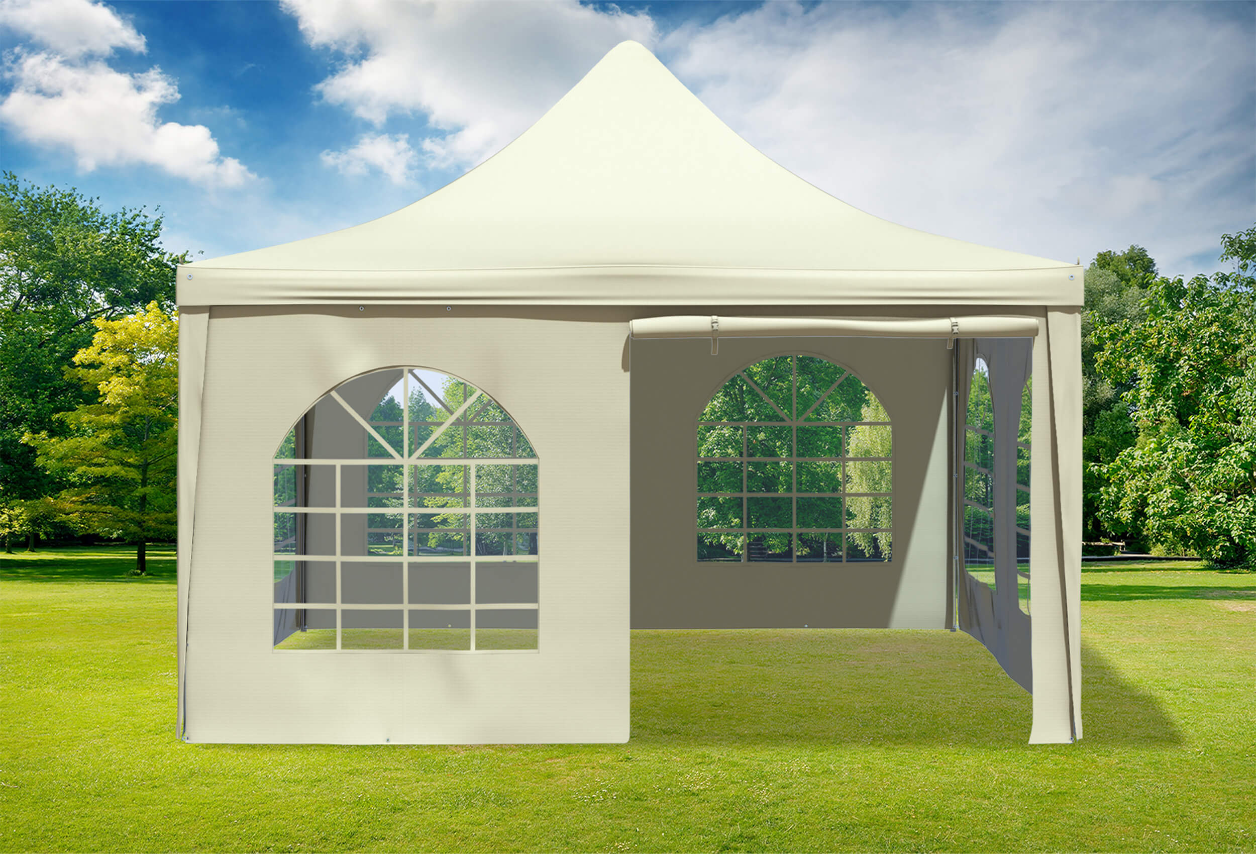 für regelmäßige oder dauerhafte Nutzung Echte 400 g/m² Materialstärke der Dachplane und Seitenteile aus Premium PVC