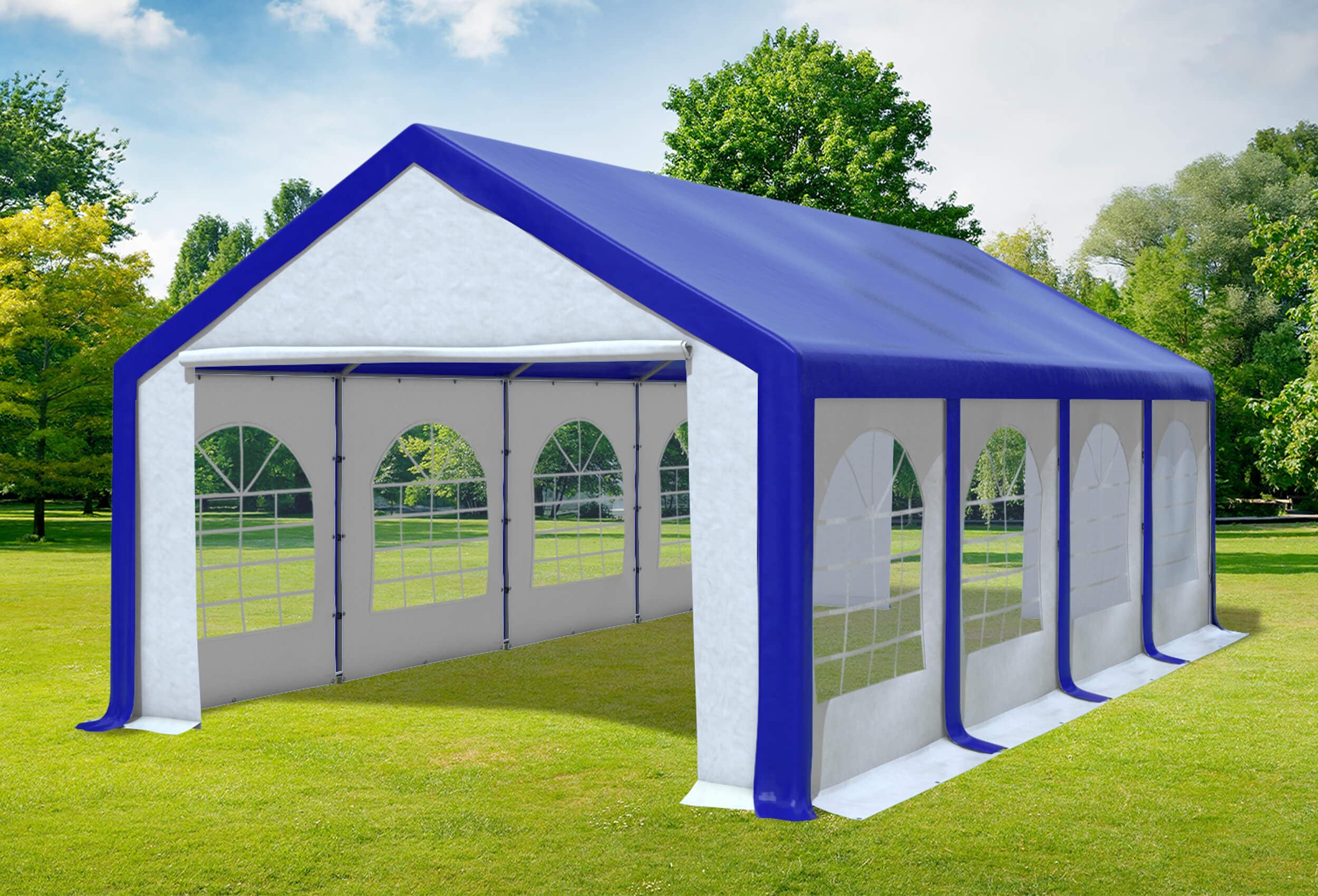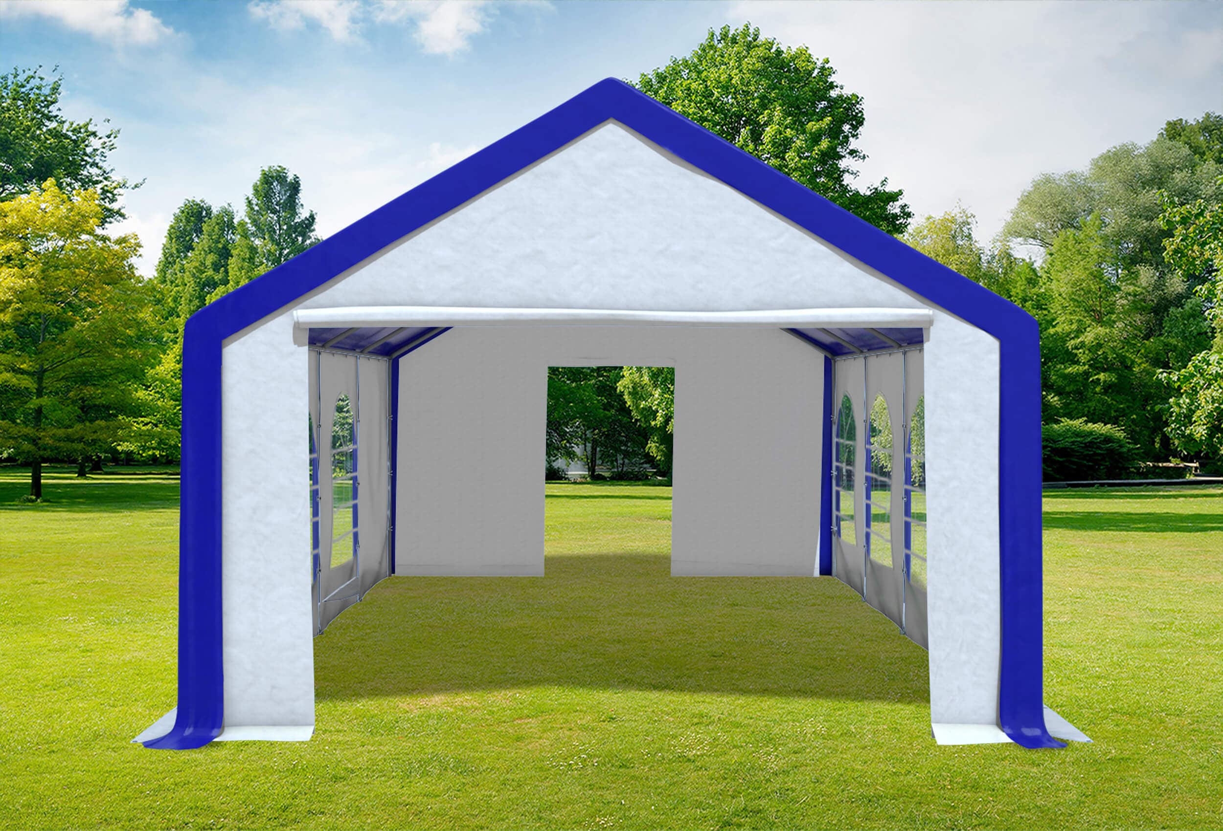 4x8 m 2in1 Kombizelt mit extra 4x4 m Dach, PVC blau weiß