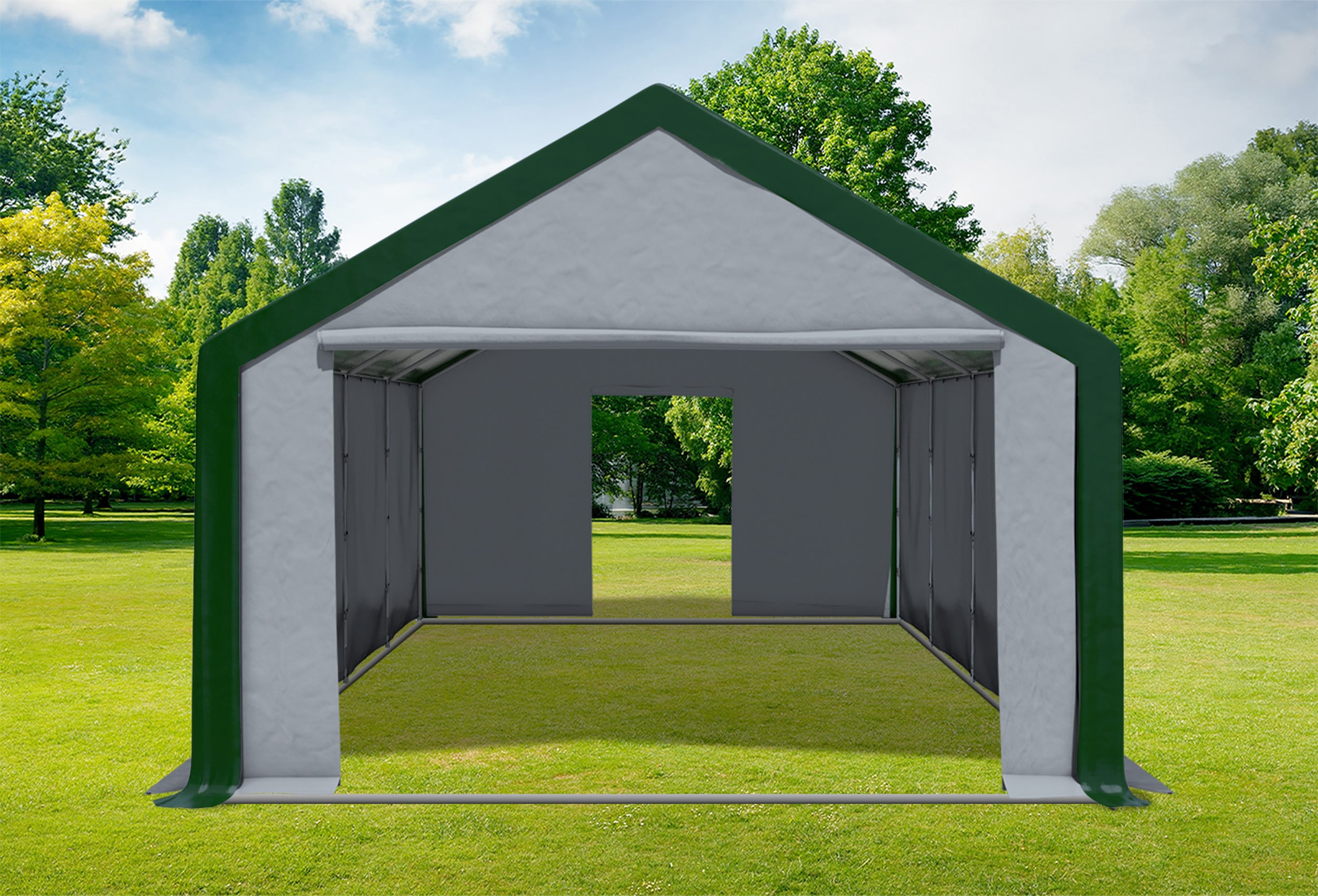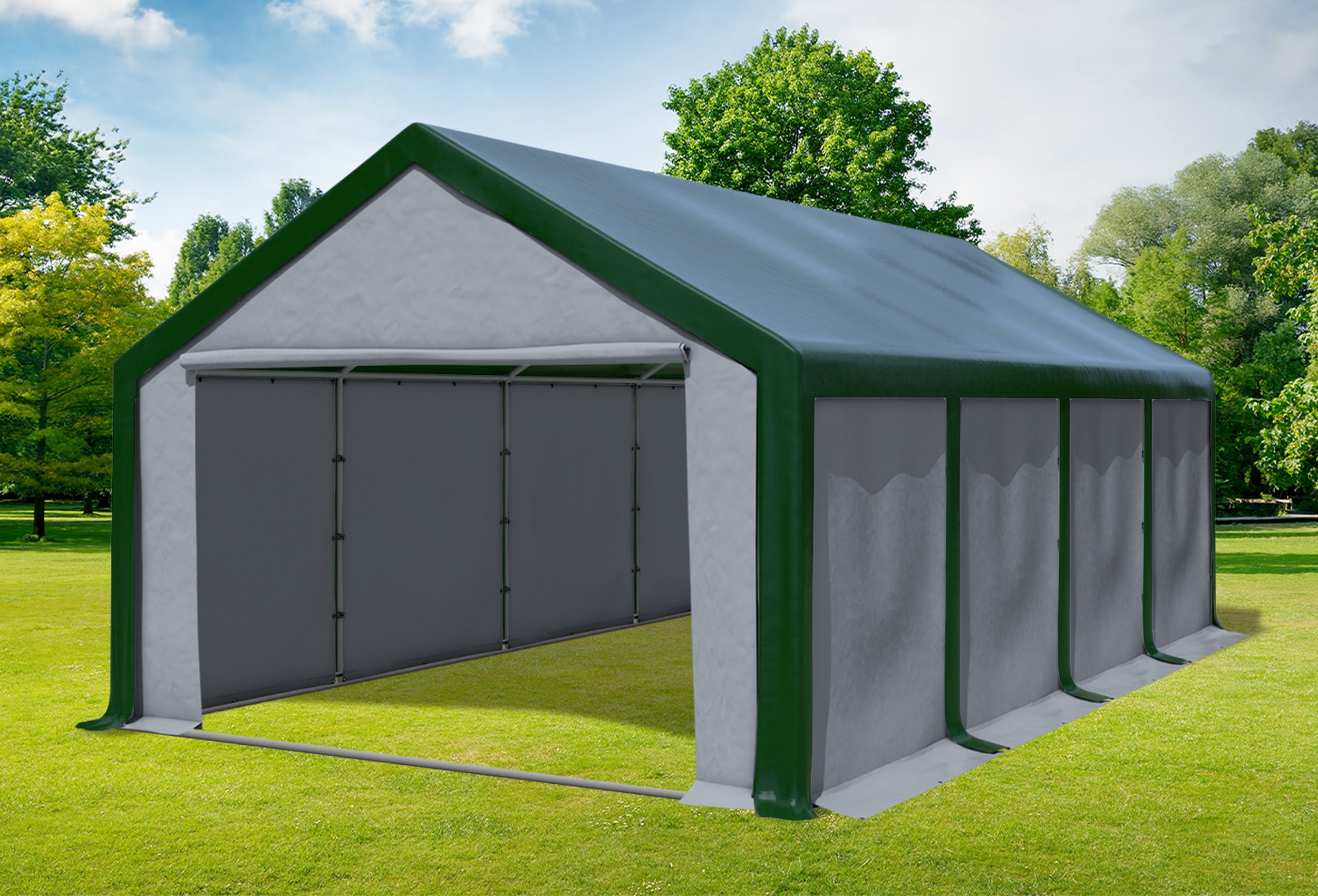 4x8 m Partyzelt, PVC grün grau
