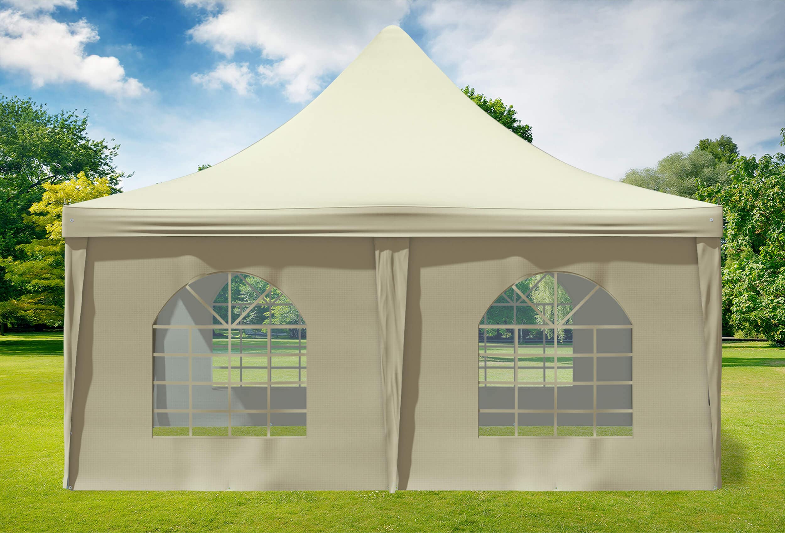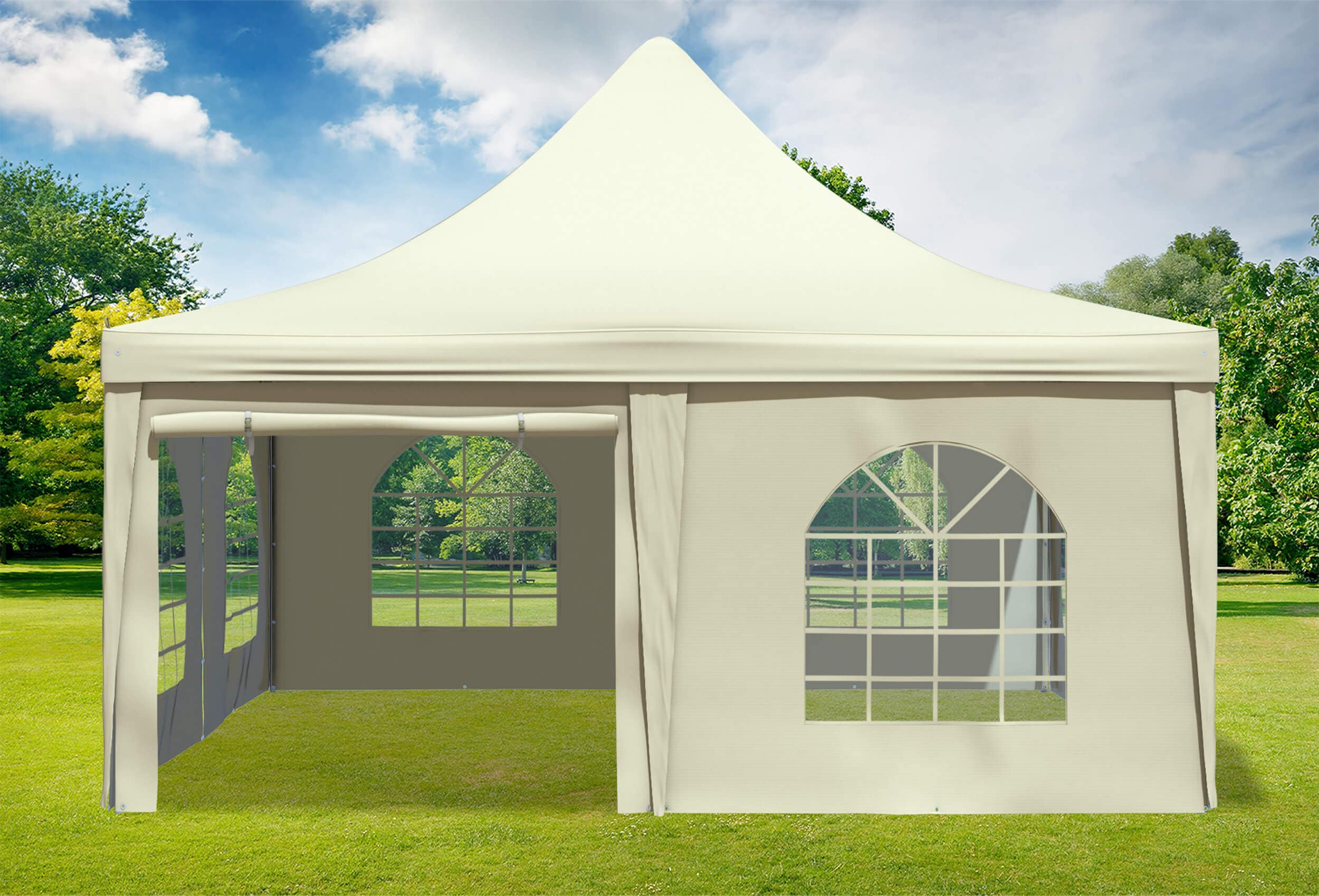 für regelmäßige oder dauerhafte Nutzung Echte 400 g/m² Materialstärke der Dachplane und Seitenteile aus Premium PVC