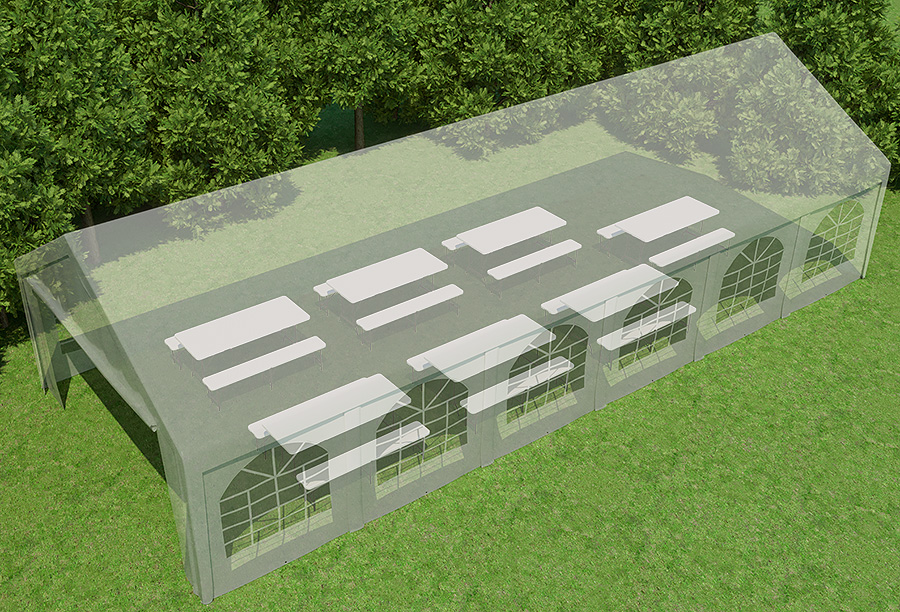 Unsicher wie viele Personen in diese Zeltgröße passen:120 Personen stehend, 85 sitzend oder 7 Bierzeltgarnituren finden hier ungefähr Platz Sehr robust und langlebig durch dickes Planenmaterial Perfekt für die nächste Gartenparty - Ideal für Hochzeiten, Geburtstage oder Vereine, Klubs und Straßenfeste Aufgrund solider Konstruktion kommen die Zelte auch oft bei Partyveranstaltern, Märkten, Festen und auf Messen zum Einsatz Spendet Schatten an heißen Tagen und sorgt für eine wohlige Atmosphäre in den Abendstunden - durch abnehmbare Seitenwände auch als Pavillon verwendbar Alternativ auch als dauerhafter Unterstand, wettergeschützte Abstellfläche, Lagerzelt oder als Abdeckung für den Außenpool geeignet