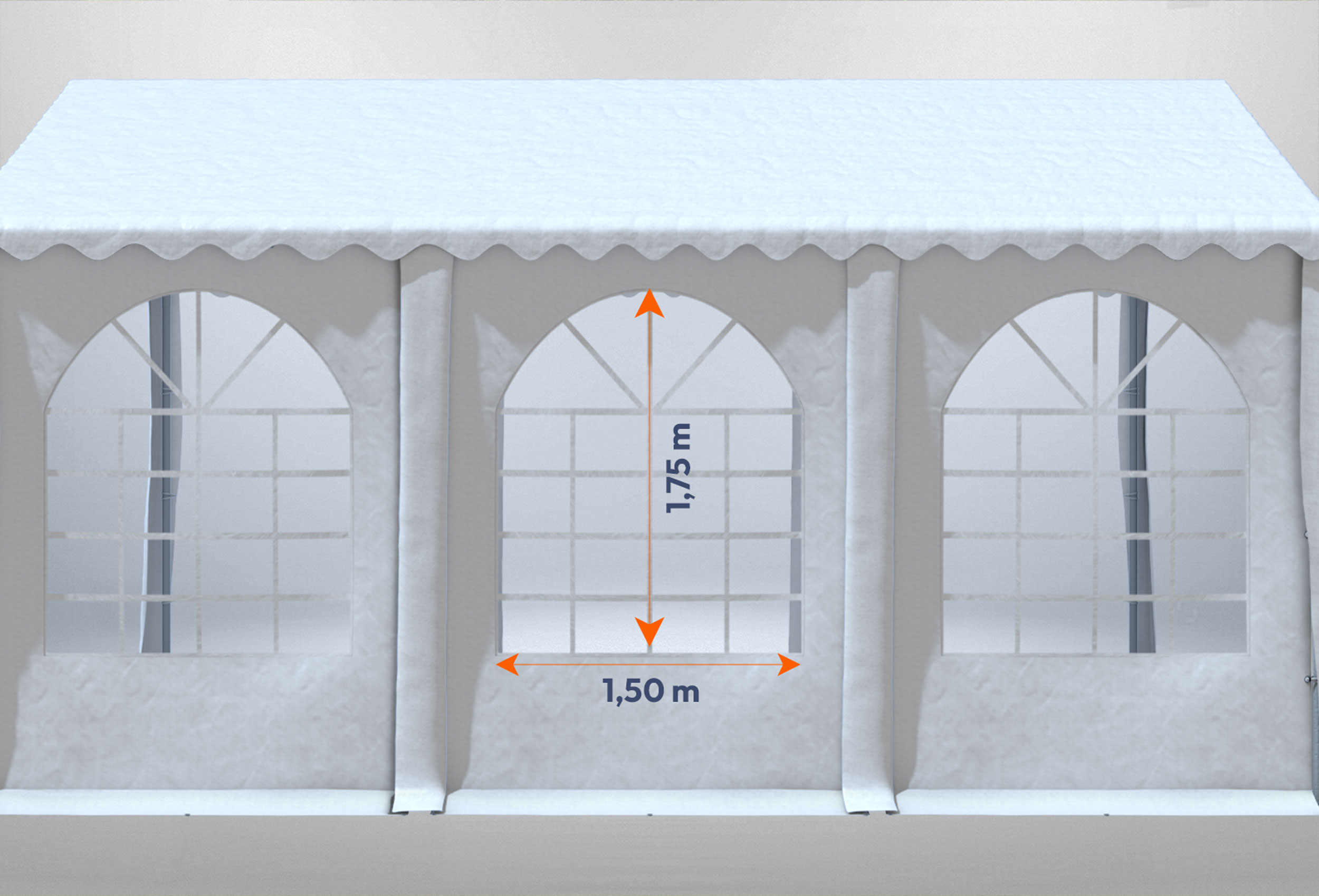 optional mit oder ohne Fenster - ohne Aufpreis können diese gemischt werden Giebelwände jeweils mit einem schmalen und einem breiten Eingang zum Aufrollen inkl. einstellbarer Clip-Fixierung und YKK-Reißverschlüsse Selbstklimatisierende Seiten- und Giebelteil-Verbindungen - mindert Kondenswasser-Bildung und Sauerstoffmangel