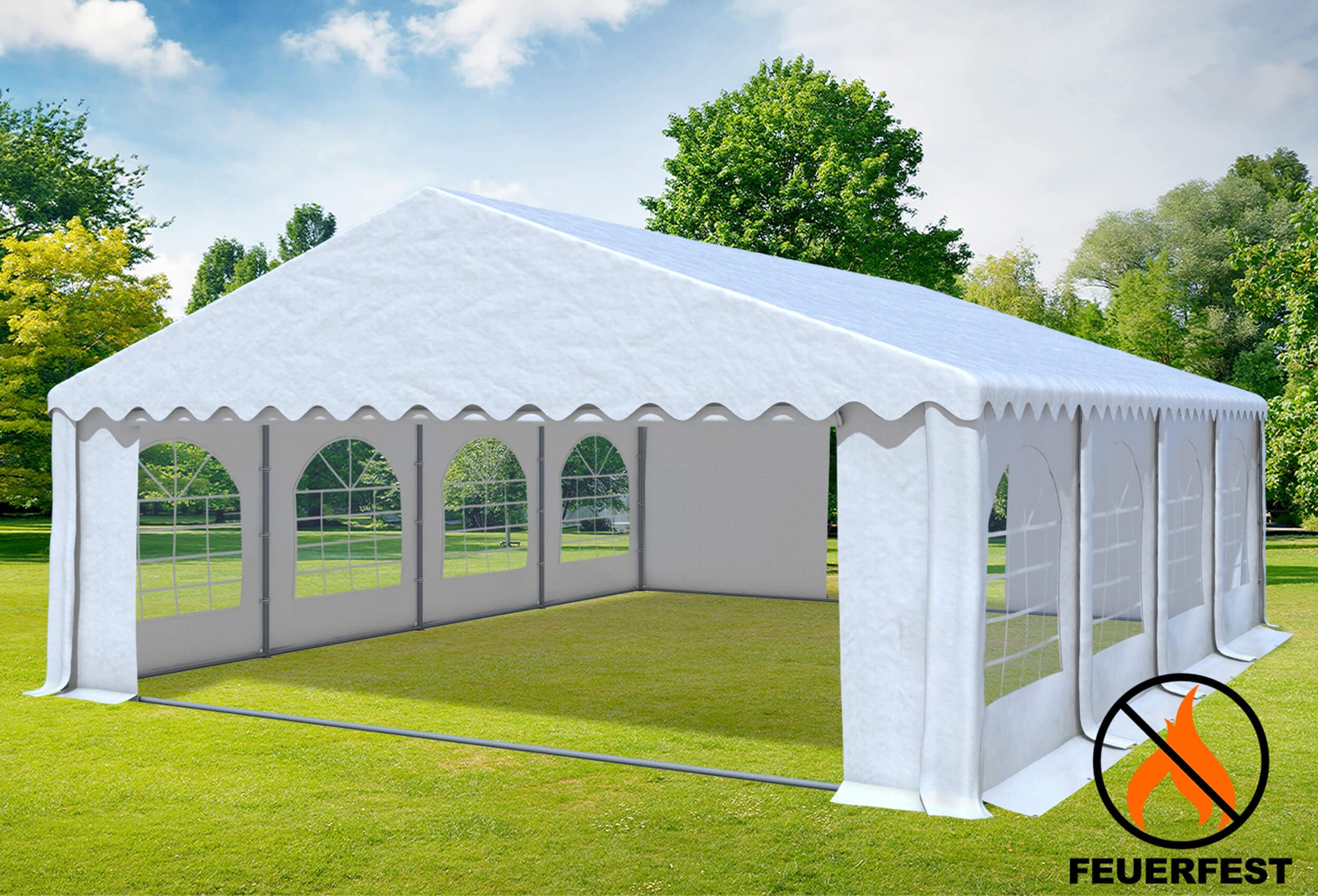 Unsicher wie viele Personen in diese Zeltgröße passen:142 Personen stehend, 102 sitzend oder 12 Bierzeltgarnituren finden hier ungefähr Platz Sehr robust und langlebig durch dickes Planenmaterial Perfekt für die nächste Gartenparty - Ideal für Hochzeiten, Geburtstage oder Vereine, Klubs und Straßenfeste Aufgrund solider Konstruktion kommen die Zelte auch oft bei Partyveranstaltern, Märkten, Festen und auf Messen zum Einsatz Spendet Schatten an heißen Tagen und sorgt für eine wohlige Atmosphäre in den Abendstunden - durch abnehmbare Seitenwände auch als Pavillon verwendbar Alternativ auch als dauerhafter Unterstand, wettergeschützte Abstellfläche, Lagerzelt oder als Abdeckung für den Außenpool geeignet