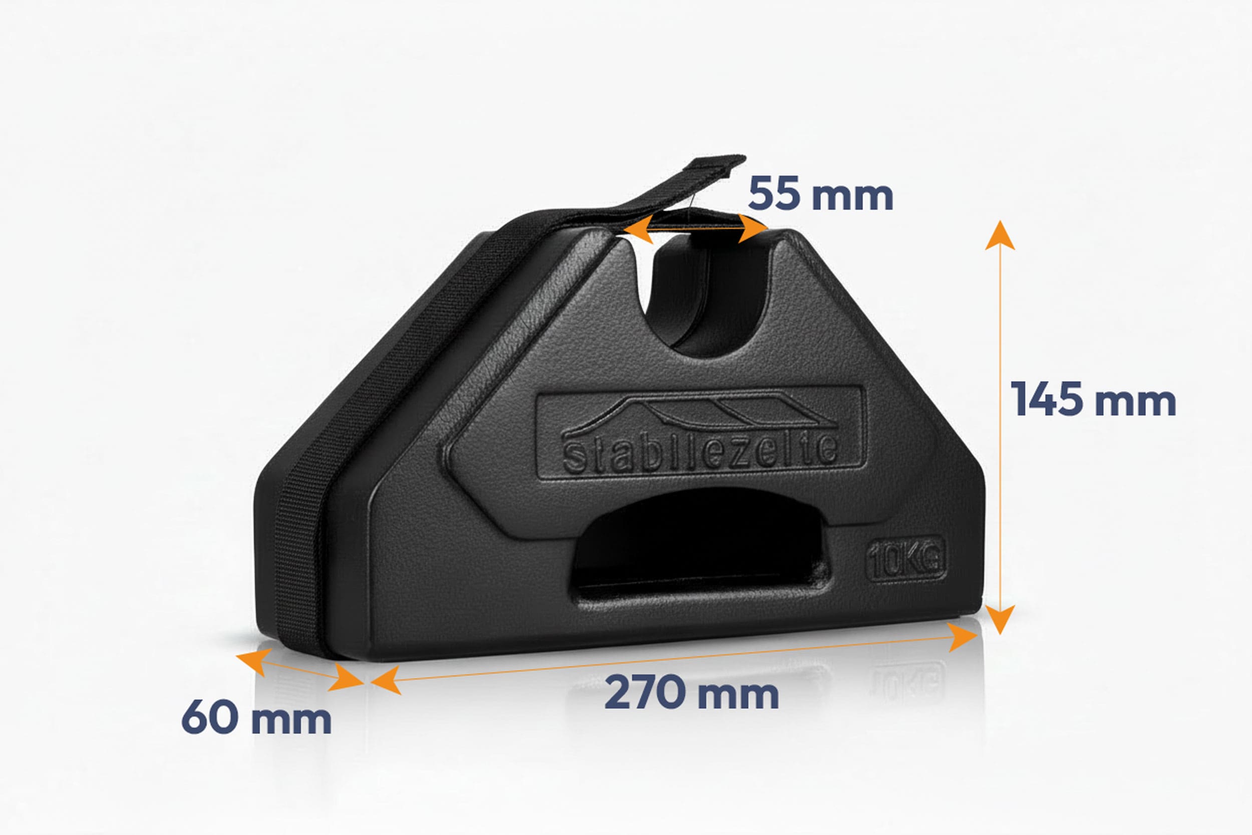 Die perfekte Lösung um Ihr Zelt bei festem Untergrund zu beschweren und sichern. Einfach die Gewichtsplatten auf den Fuß Ihres Zeltes stellen und mit Hilfe des Klettverschlusses fixieren.