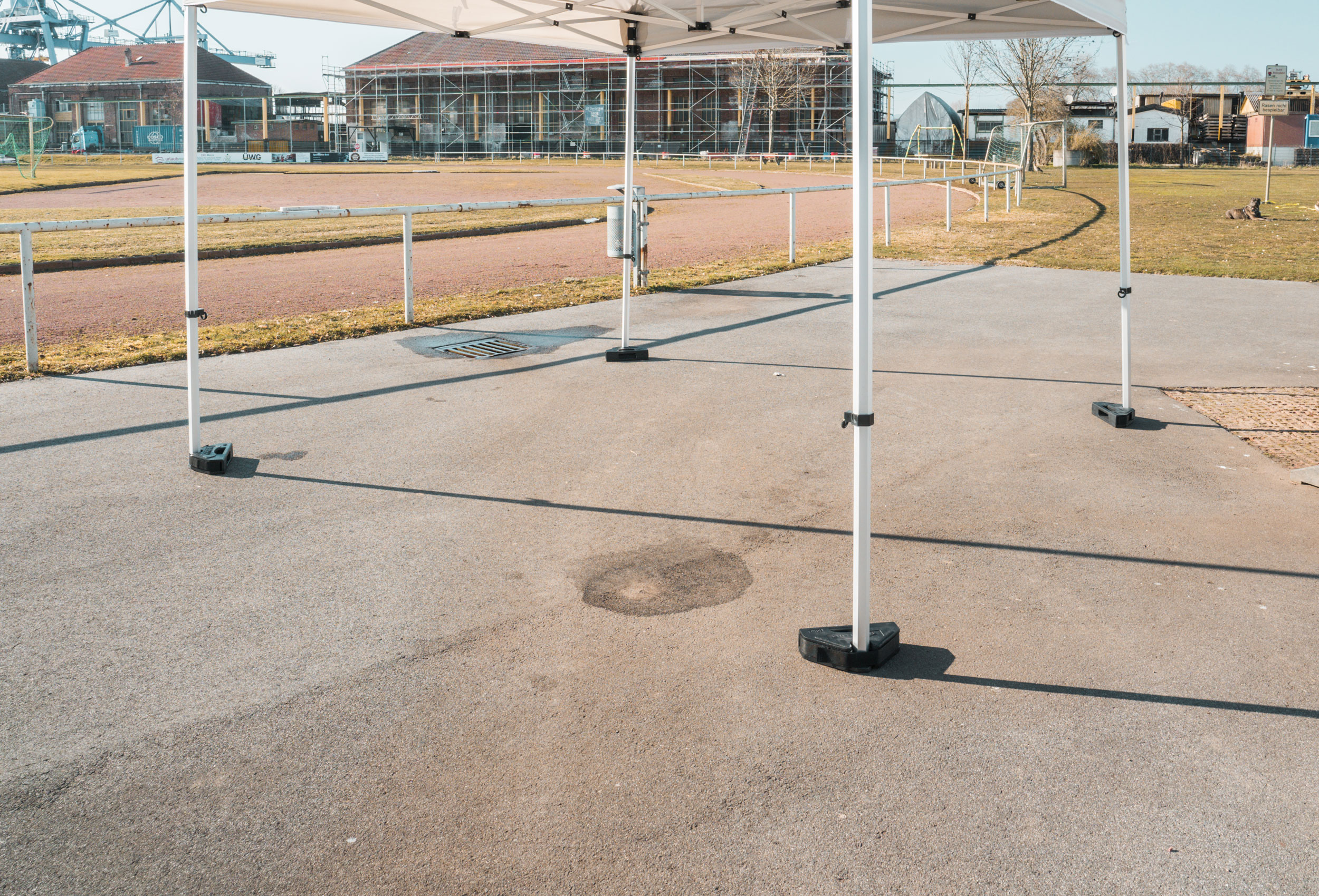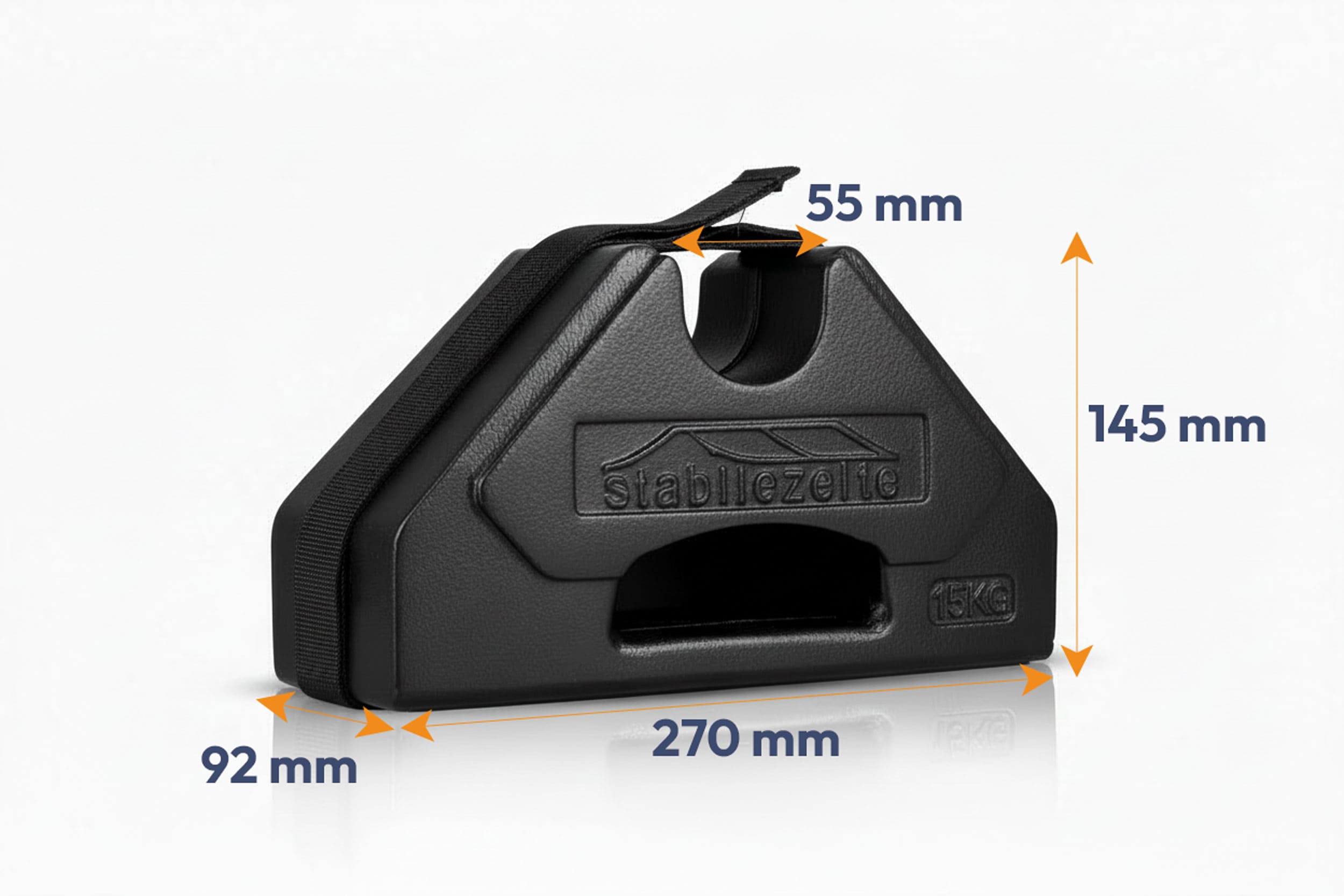 Die perfekte Lösung um Ihr Zelt bei festem Untergrund zu beschweren und sichern. Einfach die Gewichtsplatten auf den Fuß Ihres Zeltes stellen und mit Hilfe des Klettverschlusses fixieren.